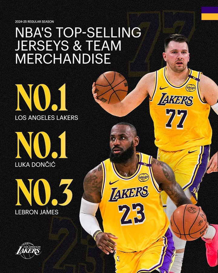 The NBA and National Basketball Players Association today jointly announced that the Los Angeles Lakers’ Luka Dončić and the Lakers franchise secured the top spots on the NBA’s Most Popular Jersey and Team Merchandise lists.