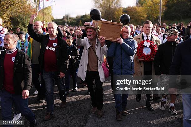 In a scene heavy with symbolism and frustration, thousands of supporters of West Ham United took to the streets ahead of their Premier League fixture, carrying a massive coffin as part of a funeral-style march aimed squarely at club leadership. The protest, orchestrated by the fan action group Hammers United, was not just about results on the pitch—although those are concerning—it was about the broader direction and stewardship of the club under chairman David Sullivan (and vice-chair Karren Brady). (Hammers News)