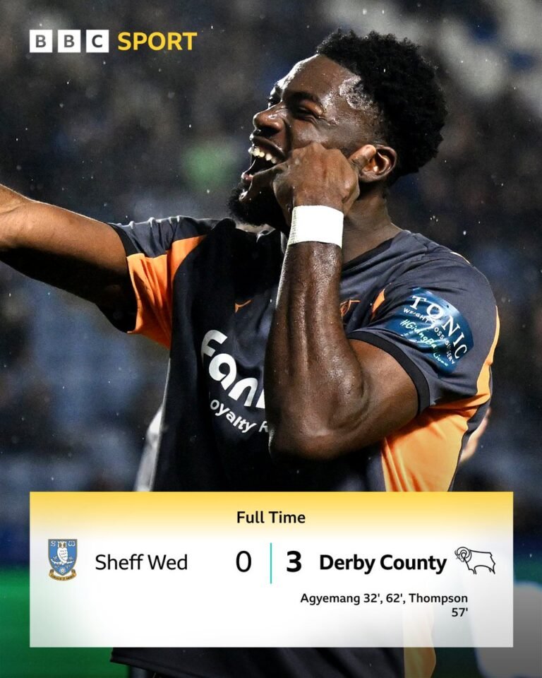Just Now:Agyemang at the Double as Derby Silence Hillsborough to End Winless Run