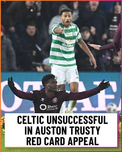 Against Hibs, Trusty was sent off for an off the ball incident as Celtic were preparing to take a corner in the second half.